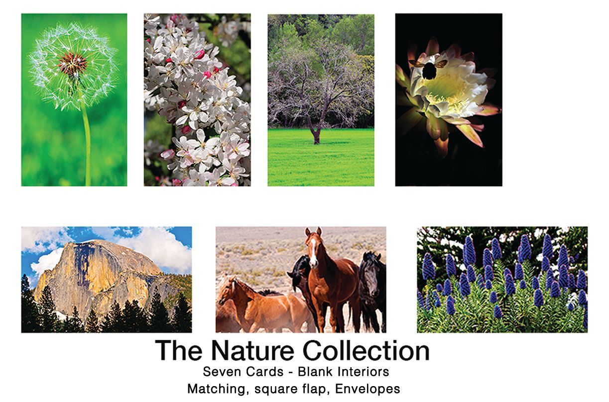 NATURE COLLECTION ... Is a seven card collection of 4.5" x 6" blank cards printed on high quality 110 lb soft cream card stock made with 50% recycled content with blank interiors and matching 80 lb. straight flap envelopes.